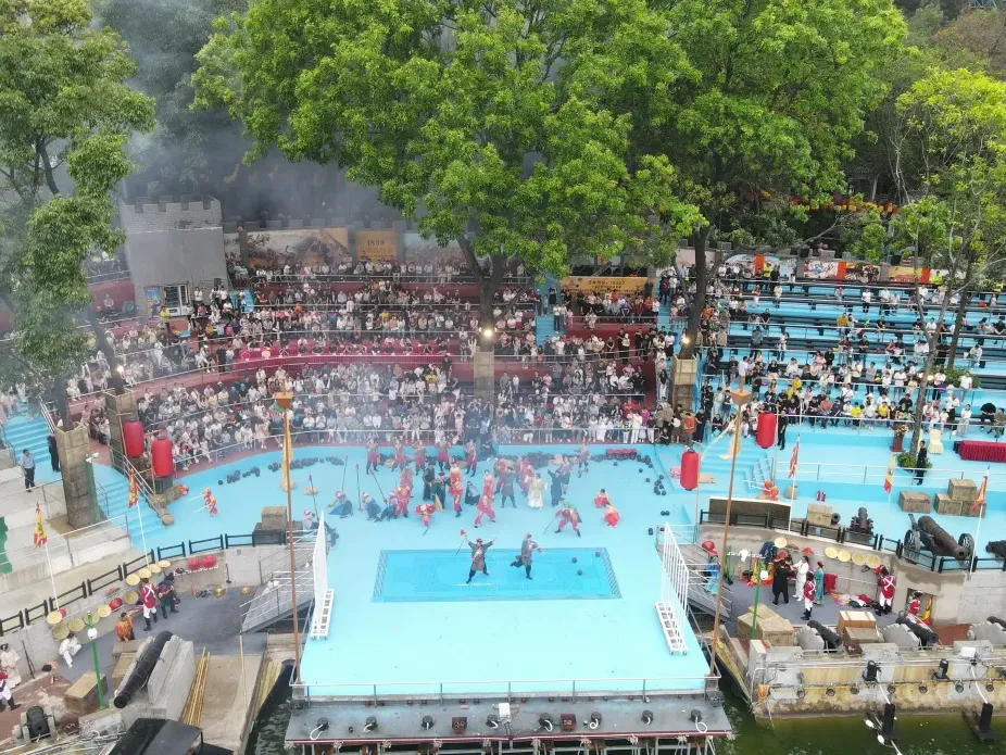重现历史烽烟,大型全景特效秀还原鸦片销毁场景,