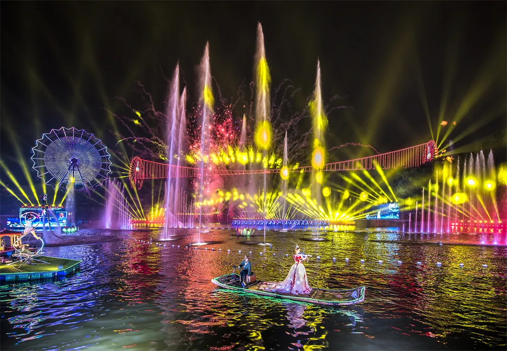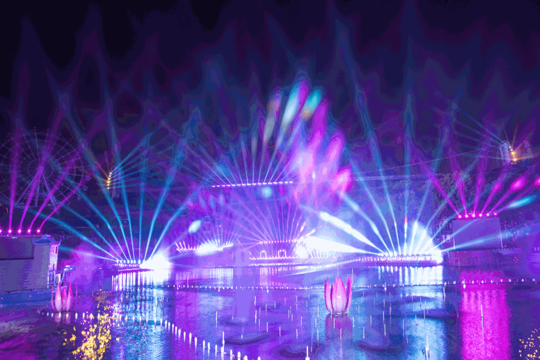 在荡气回肠的《梁祝》水舞灯光秀中