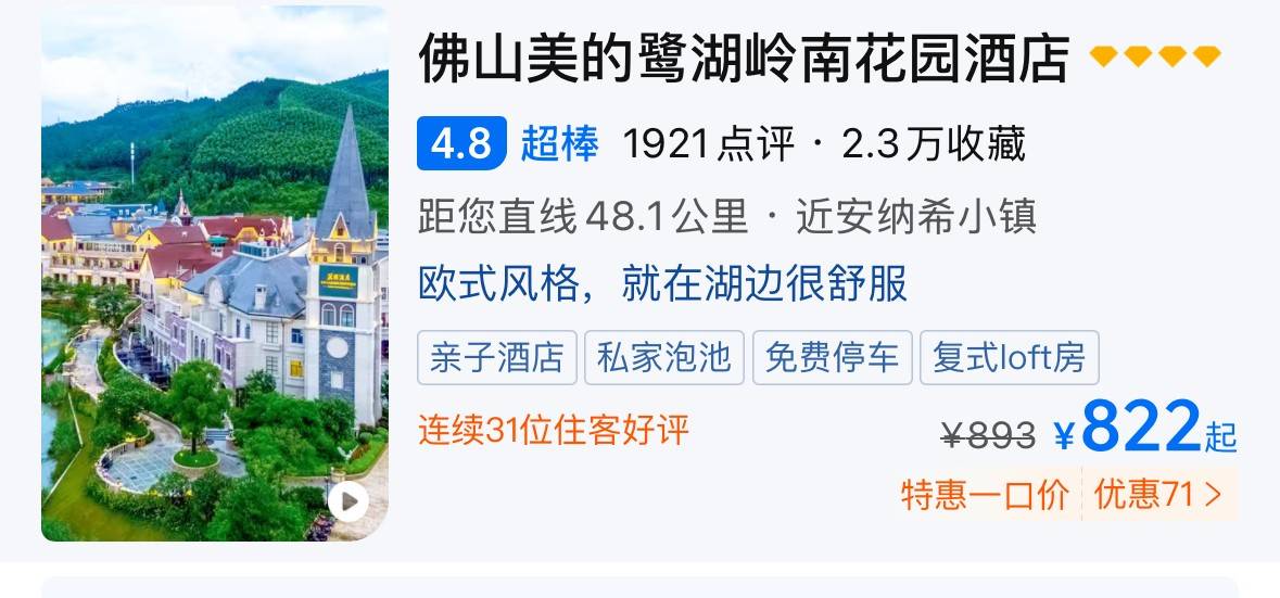 玩累了入住佛山美的鹭湖景区
