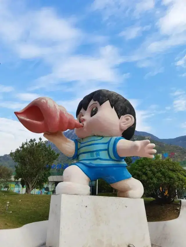 门口小男孩举着海螺的巨大雕塑,远远就能看到。