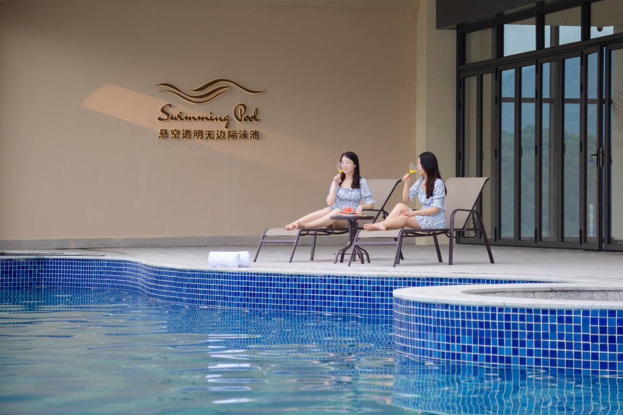 【玩】含酒店三楼康体中心,无边际透明泳池、户外帐篷、健身房、儿童乐园、台球室、迷你高尔夫