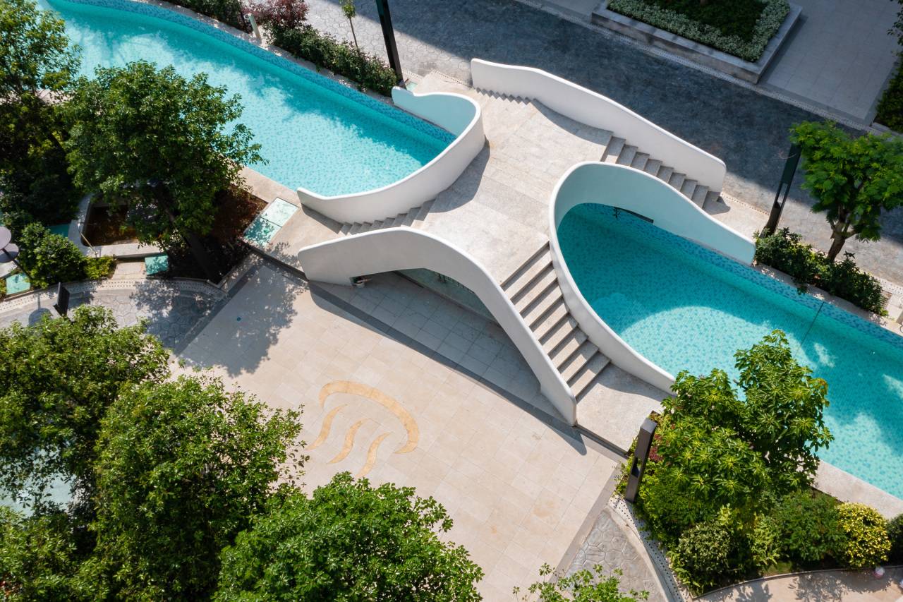 位于顶楼的悬空泳池,