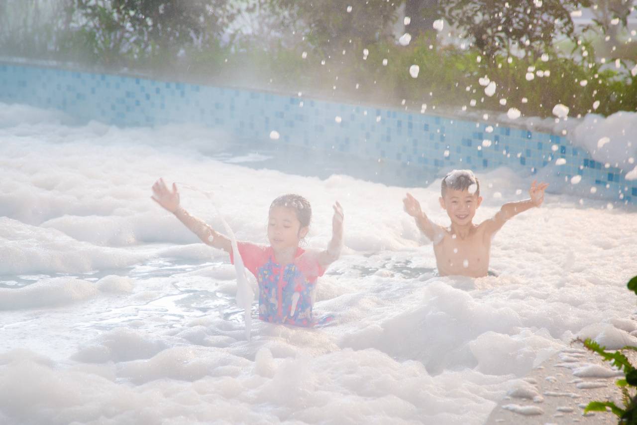 # 儿童池+游乐场 戏水带娃两不误 #