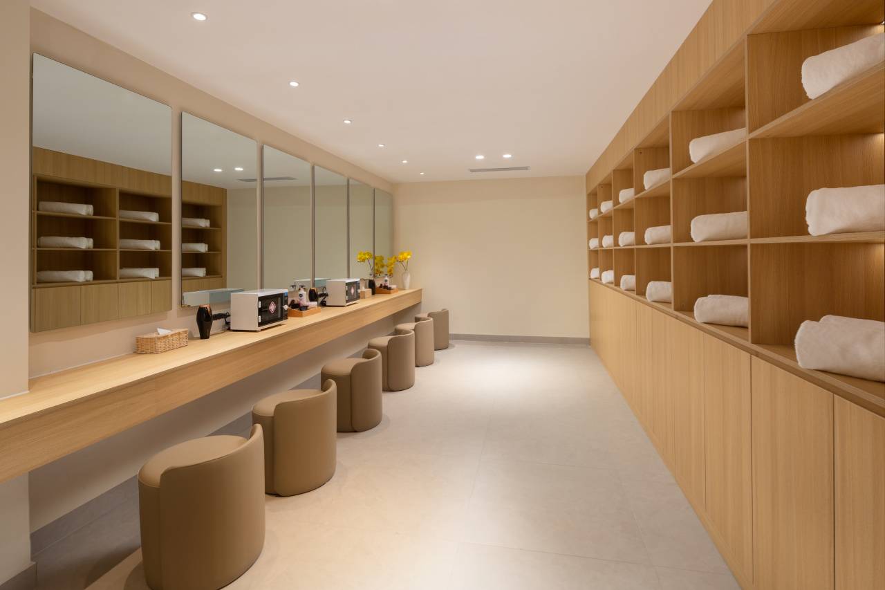 更衣室面积很大,有独立储物柜