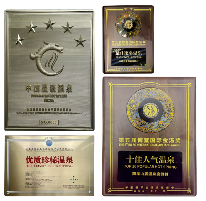认证为五星级温泉酒店,认证为优质珍稀温泉