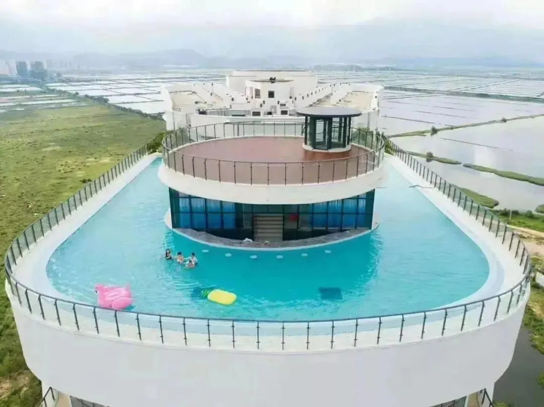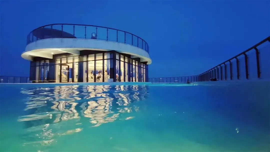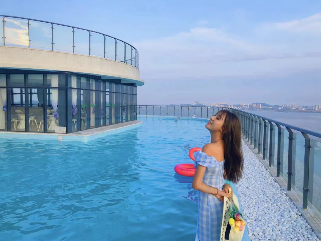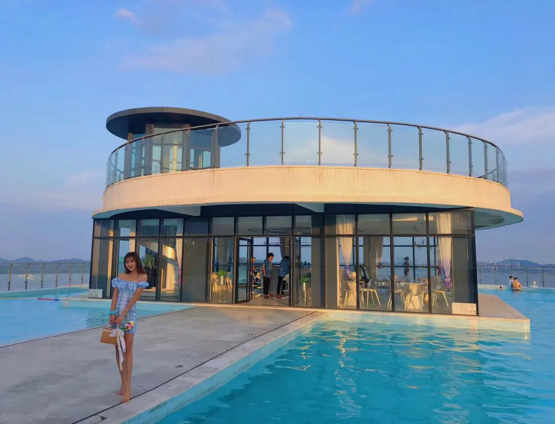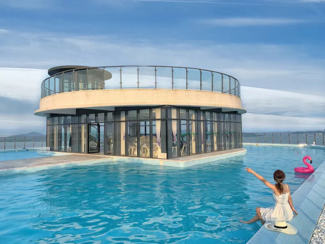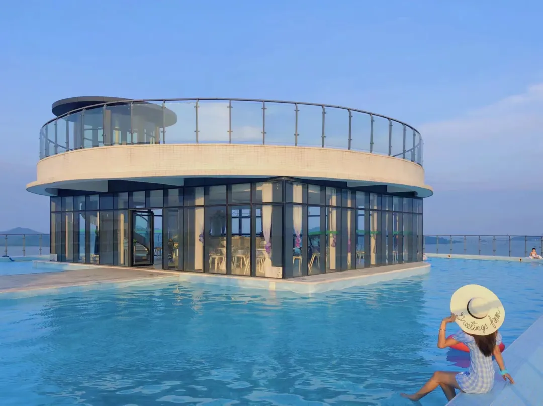 超大户外望海泳池与海的距离只差一条林荫小道。