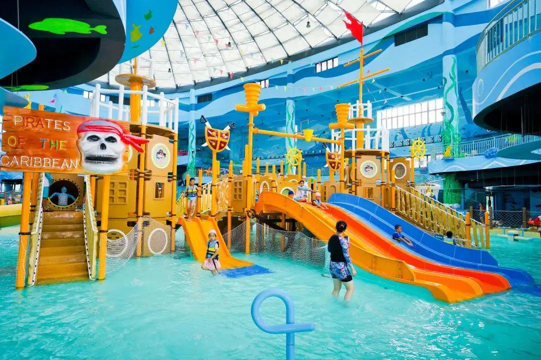 3米高的儿童嬉水池,7条滑道可以尽情嬉水,