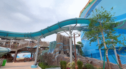 嬉水池、螺旋滑道、小炮筒滑梯、