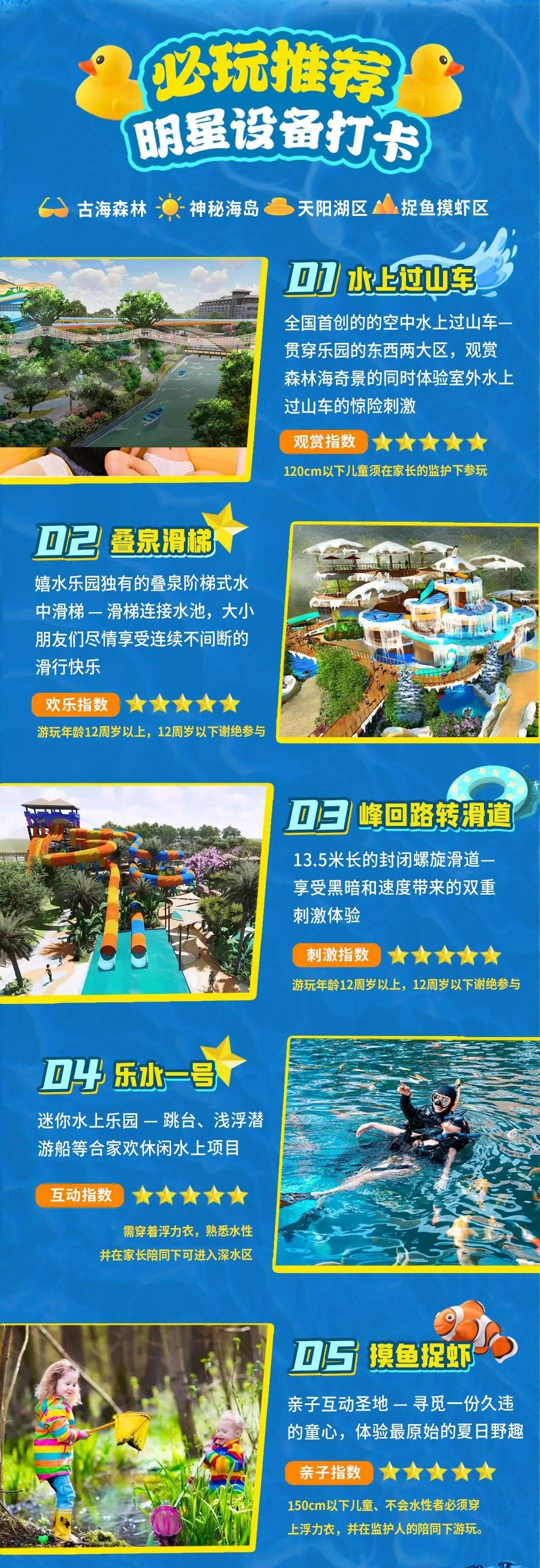 奇幻方舟嬉水池、天旋地转滑道、迷你太空池、迷你喇叭、迷你冲天回旋梯……