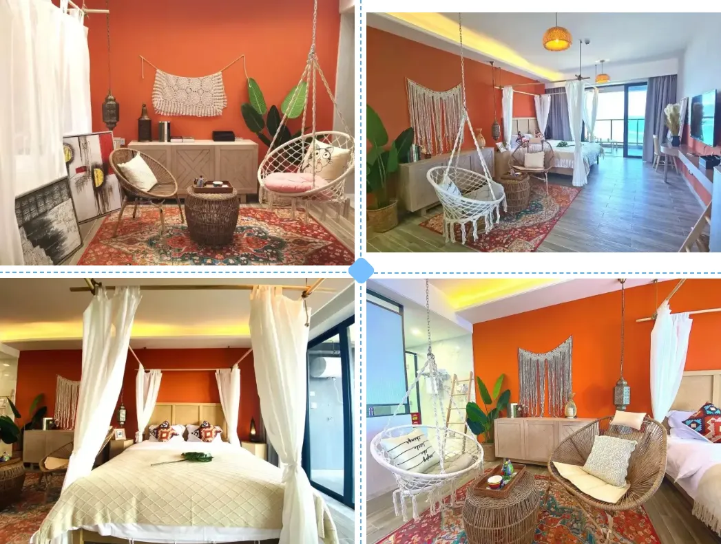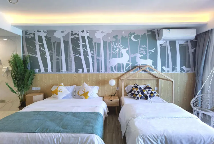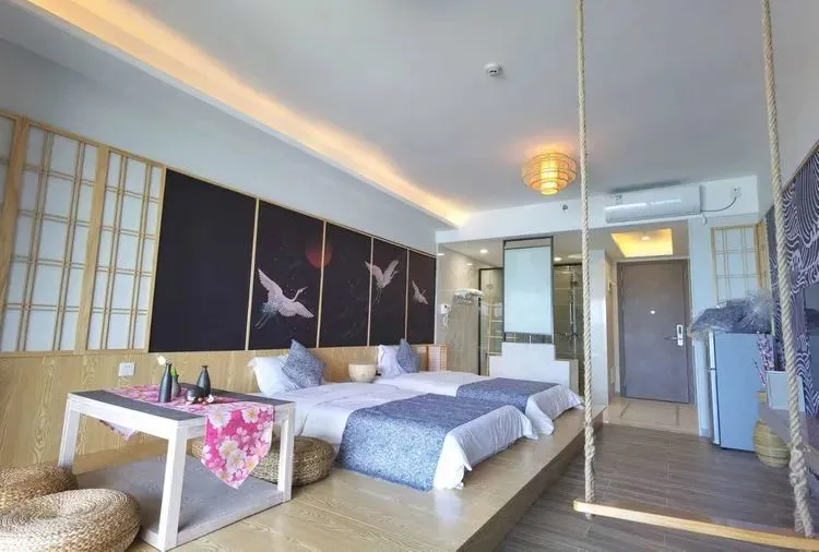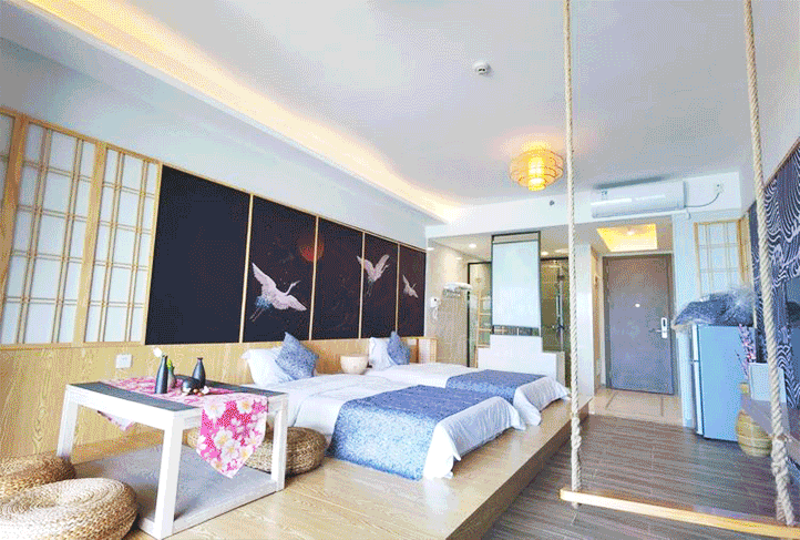 摩登东方主题:1.8m大床1张;摩洛哥主题:1.8m大床1张;日式樱漫:1.2m床2张;亲子房:1.8m大床1张,1.2m床1张