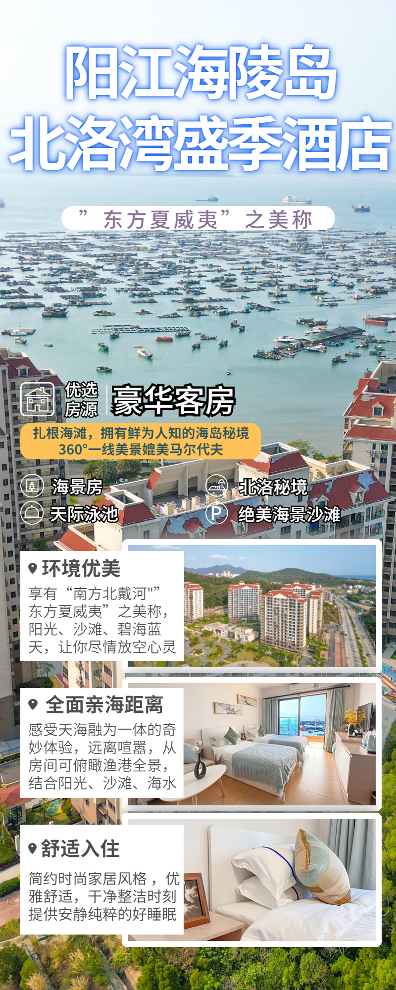 暑假大促【阳江海陵岛北洛湾盛季酒店】包含北洛珍珠白沙滩+海边栈道~¥199抢山景房,加收30元可升级为海景房!¥499抢海景两房一厅![海景房(含北洛珍珠白沙滩+海边栈道)](售至25.8.30)