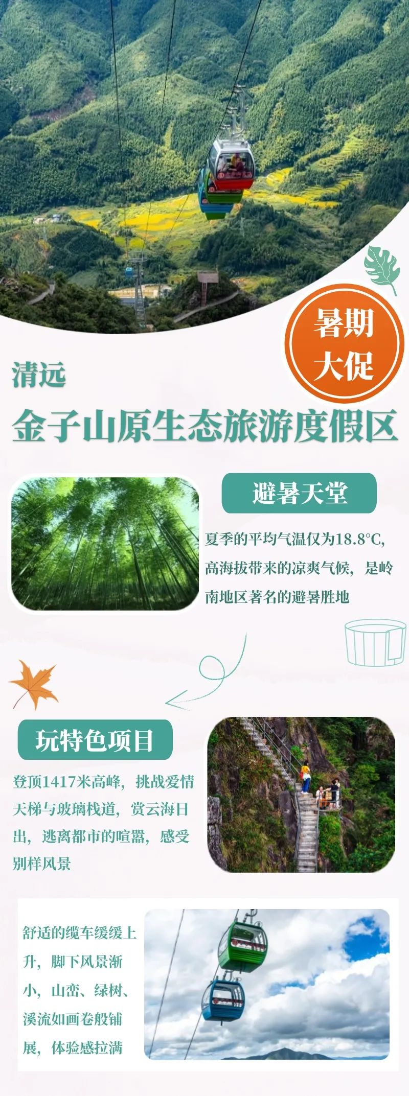 【清远金子山原生态旅游度假区】景区成人门票+单程缆车+叠水渔乐谷+玻璃桥抢购价:¥155元
