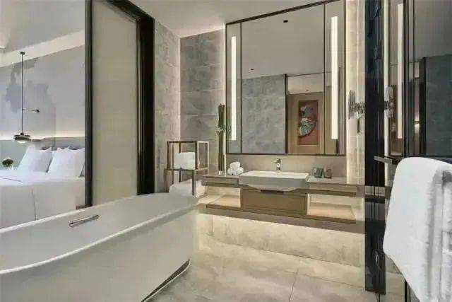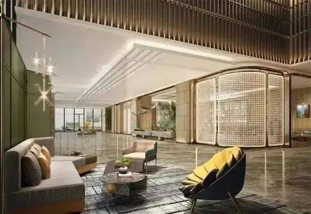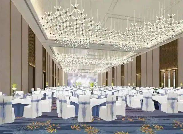 设计师提取并勾勒出岭南特色“锅耳墙”的优美曲线线条,并进行改造做出整体的立面墙体造型,将岭南传统复杂的屋顶结构简化,体现出增城岭南古建之美的同时,也体现了现代的线条之美;用凤凰羽毛形态的吊灯,挂绿湖面碧波映射出增城延绵起伏山峦的画面让整个大堂空间突显尊贵感。
