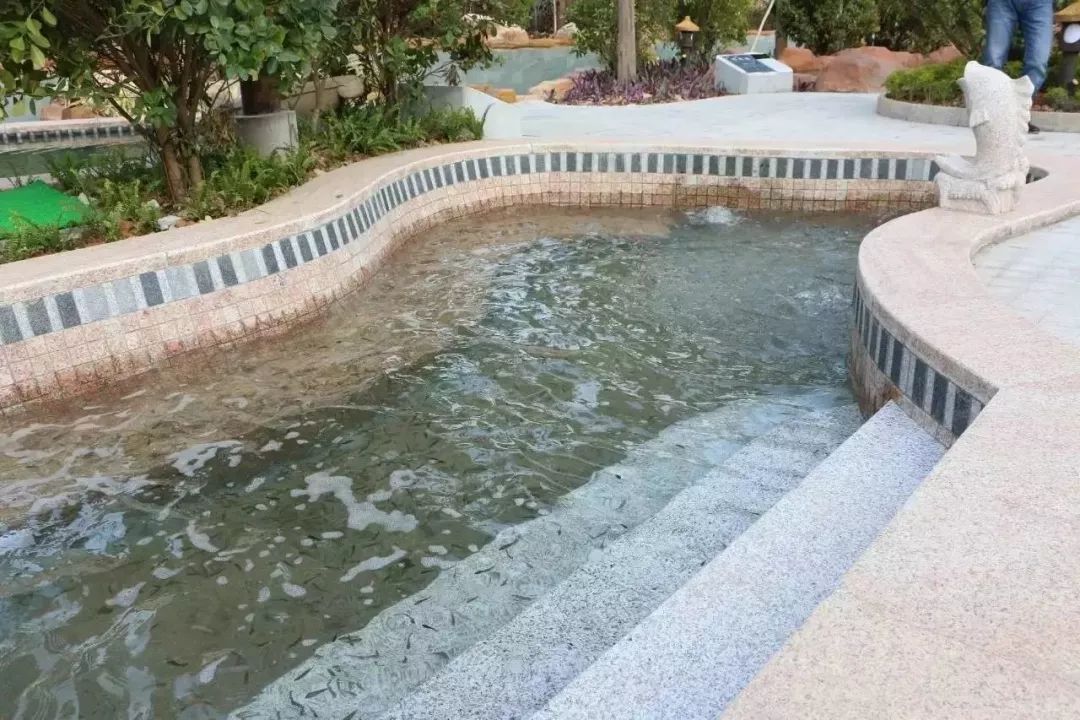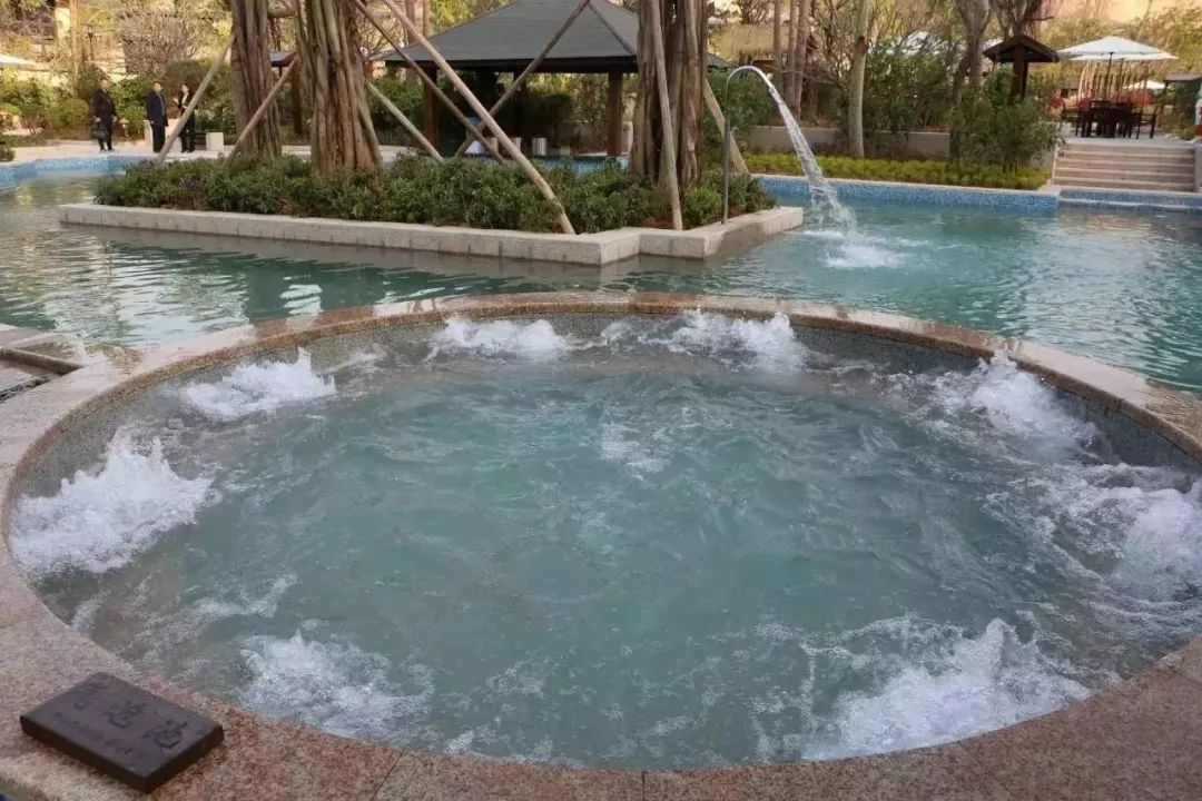 酒店温泉园区拥有32种汤池,日出水量达到1000多立方,出水温度36℃至40℃。