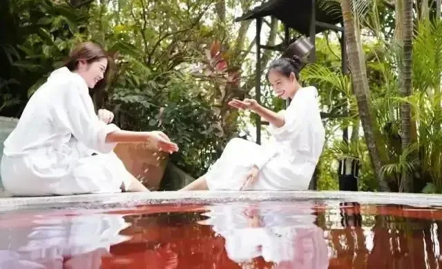 徜徉在 “巴厘式”风情汤池里