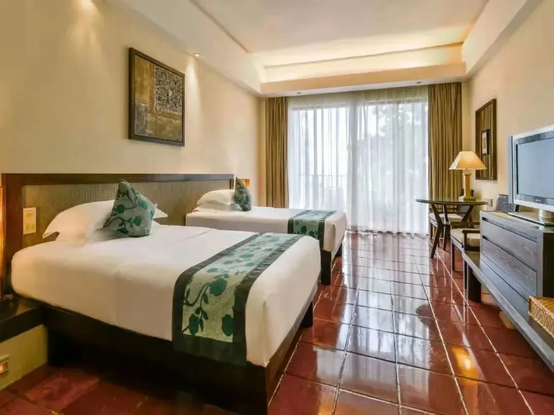 房型说明:园景大床房1张2*2米床;园景双床2张1.2*2米床