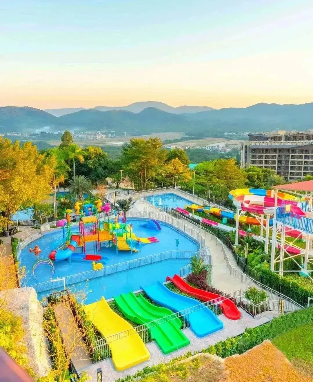 清凉动感的彩虹滑梯、儿童水寨