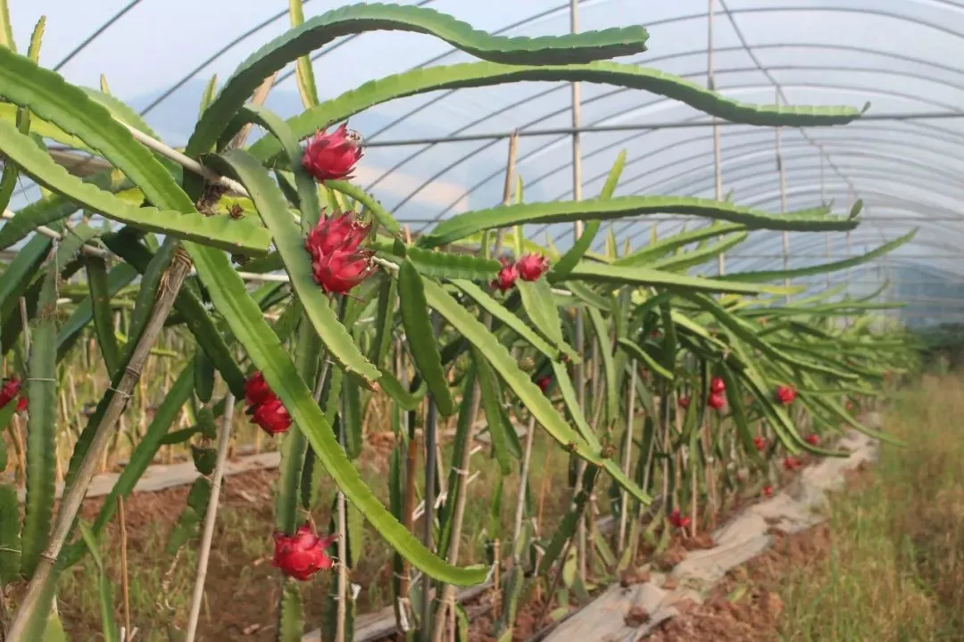 这里的火龙果品种主要有台湾大红、红水晶、燕窝果、无刺黄龙等多个品种,而且不采用人工授粉,完全是自然授粉,在夏日里看到一大片火龙果,真的非常养眼呀!