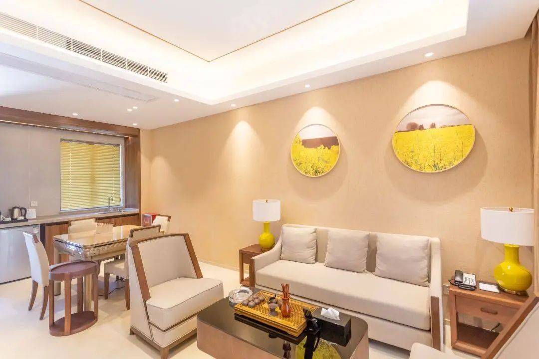 2、 套房客厅配有雀友静音麻将机、功夫茶具、 独立冰箱