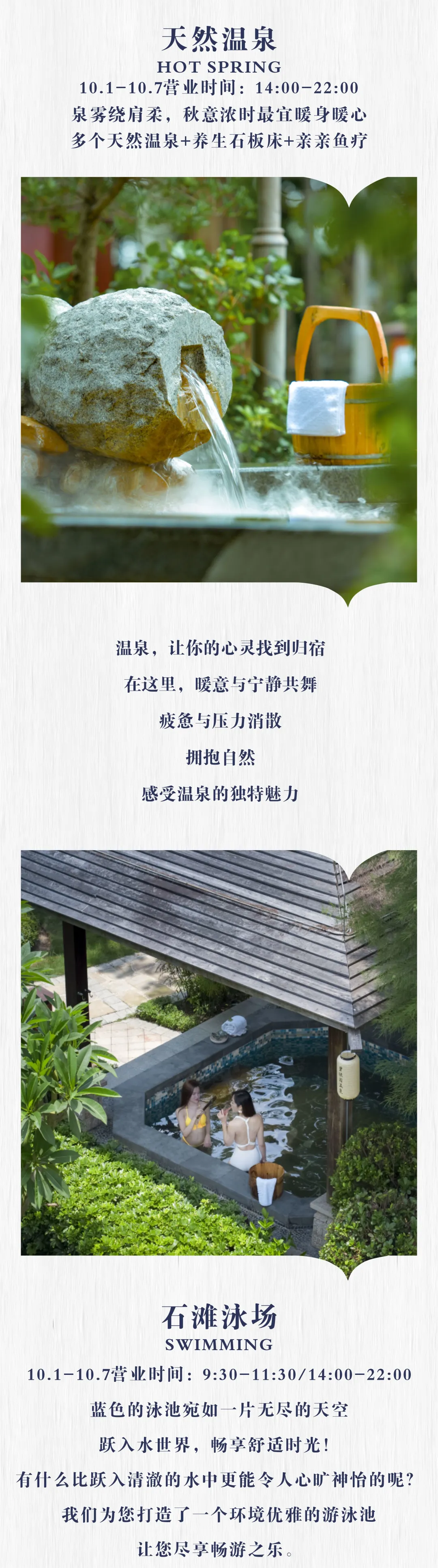 2. 凤凰湾项目门市价(多个天然温泉+亲亲鱼疗+养生石板床+石滩泳场):1.2米-1.4 大童 84元/位,1.4米以上或成人168元/位;
