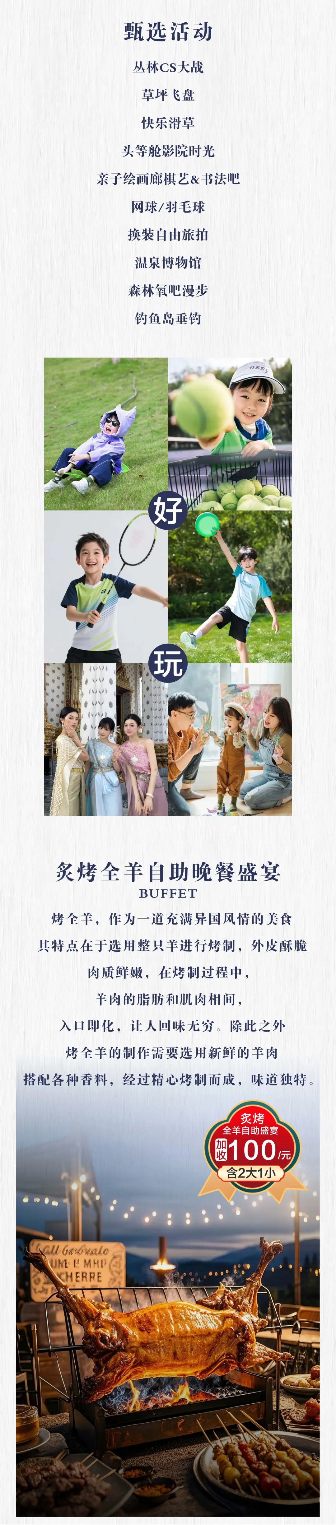 2. 烤全羊自助晚餐:1.2米-1.4米大童 74 元/位,1.4米以上或成人 148 元/位;