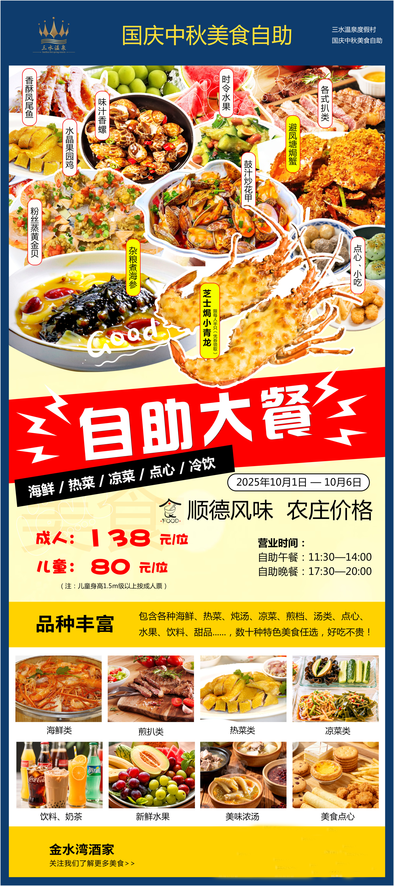10月1日-10月6日还可加订豪华海鲜自助晚餐