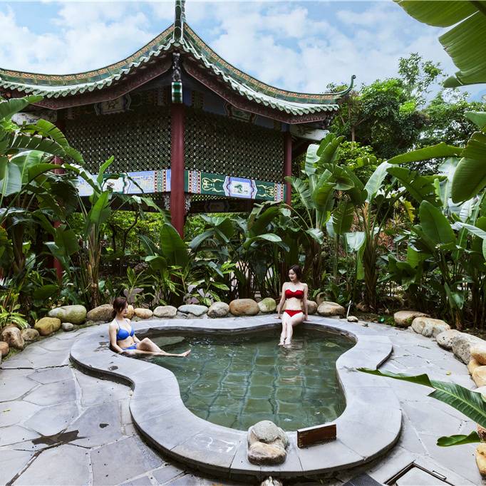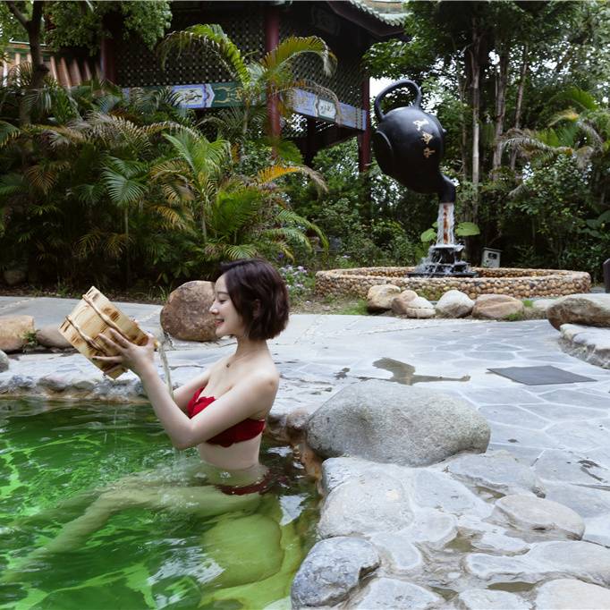 度假村温泉区域占地面积6万平方米,60个需天温泉池,划分为经典风情区、中式风情区、泰式风情区、日式风情区,欧式风情区、夏日风情区六大区域氡温泉,并有动感十足的1600立方温泉冲浪池和温泉水疗按摩设施等。