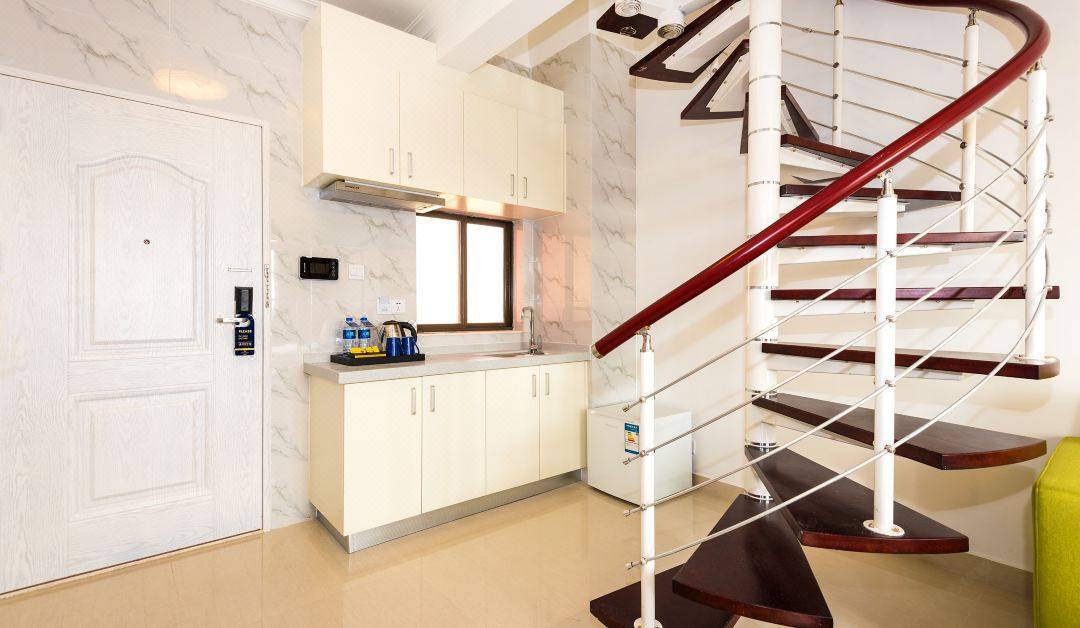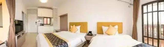 2、房型介绍:1.35米*2双床房,1.8*1米大床,套房2张1.8米的床,房间一张床,客厅一张床。复式房2张1.8米的床,楼上一张床楼下一张床