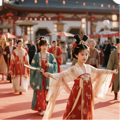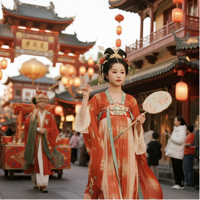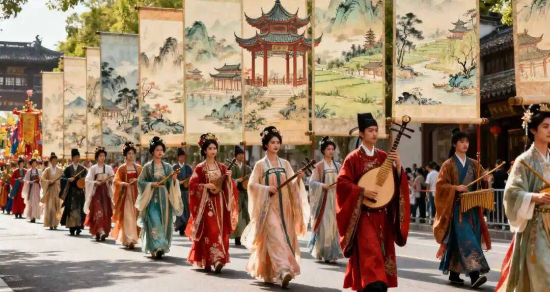 奇遇一场盛大的国风巡游队伍穿梭于汤膳蜃集