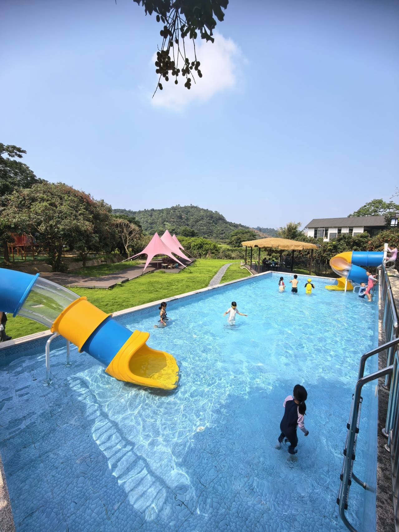 公共空间宽敞,内设月涧轩餐厅、仓储式团建基地、多功能会议室、开放式观景台阳光大草坪、魔镜健身房、户外游泳池,集休闲度假、团建聚会、亲子研学为一体