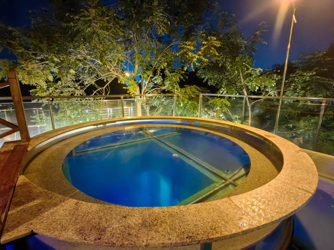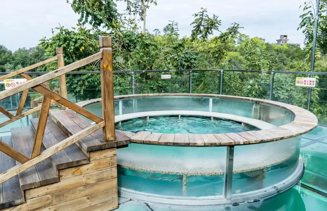 3、酒店温泉园区换票时间:9:30-23:00,园区营业时间:9:30-24:00,园区泡池共29个,实际开放情况以现场为准,景区地址:广东省清远市清城区古钱岭出口处(银盏观澜温泉),入住期间可无限次进出温泉区,温泉门票为人脸识别认证,一经扫脸不作更换人员