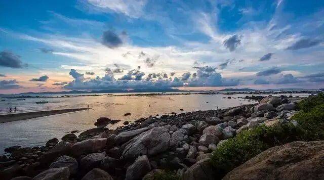 从大角湾沿着海岸线往西,就可以从闸坡中心渔港乘船出海到达马尾岛。马尾岛海岸线曲折多湾,山体被海浪千年万载的冲刷雕琢,形成了乱石滩、海蚀滩、一线天等奇异景观。