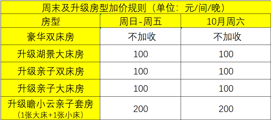 · -如需预约升级湖景大床房/亲子房/瞻小云亲子套房,不可携带宠物入住,敬请理解。