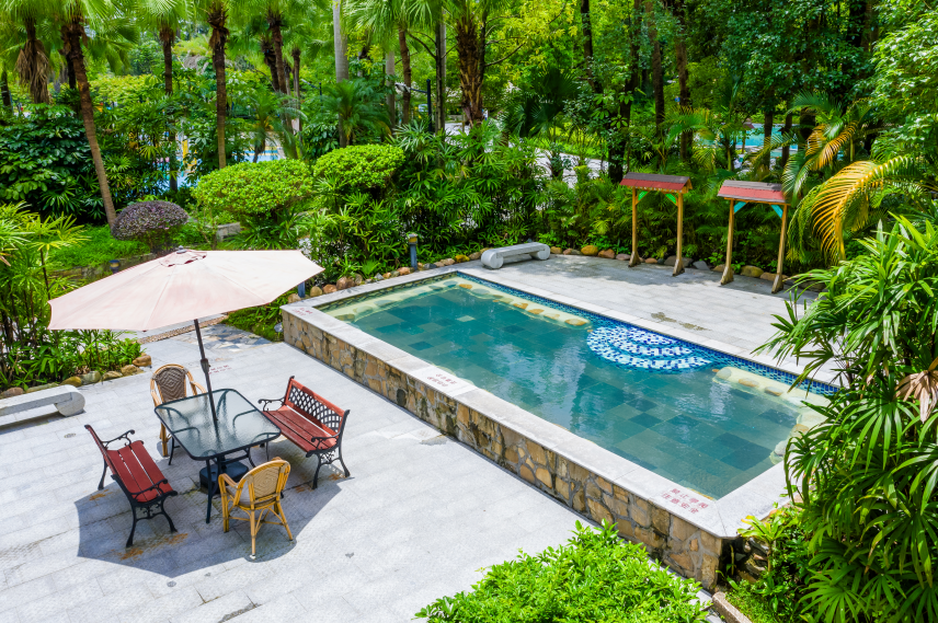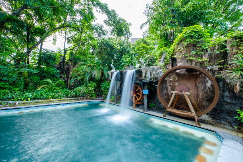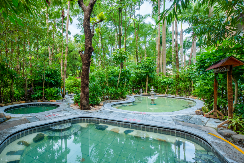 度假村与温泉泉眼一路相隔,有效的保障了温泉水质和水量。在独具东南亚园林风格的露天温泉区,58个特色各异的温泉池错落有致地分布在绿树林荫之中