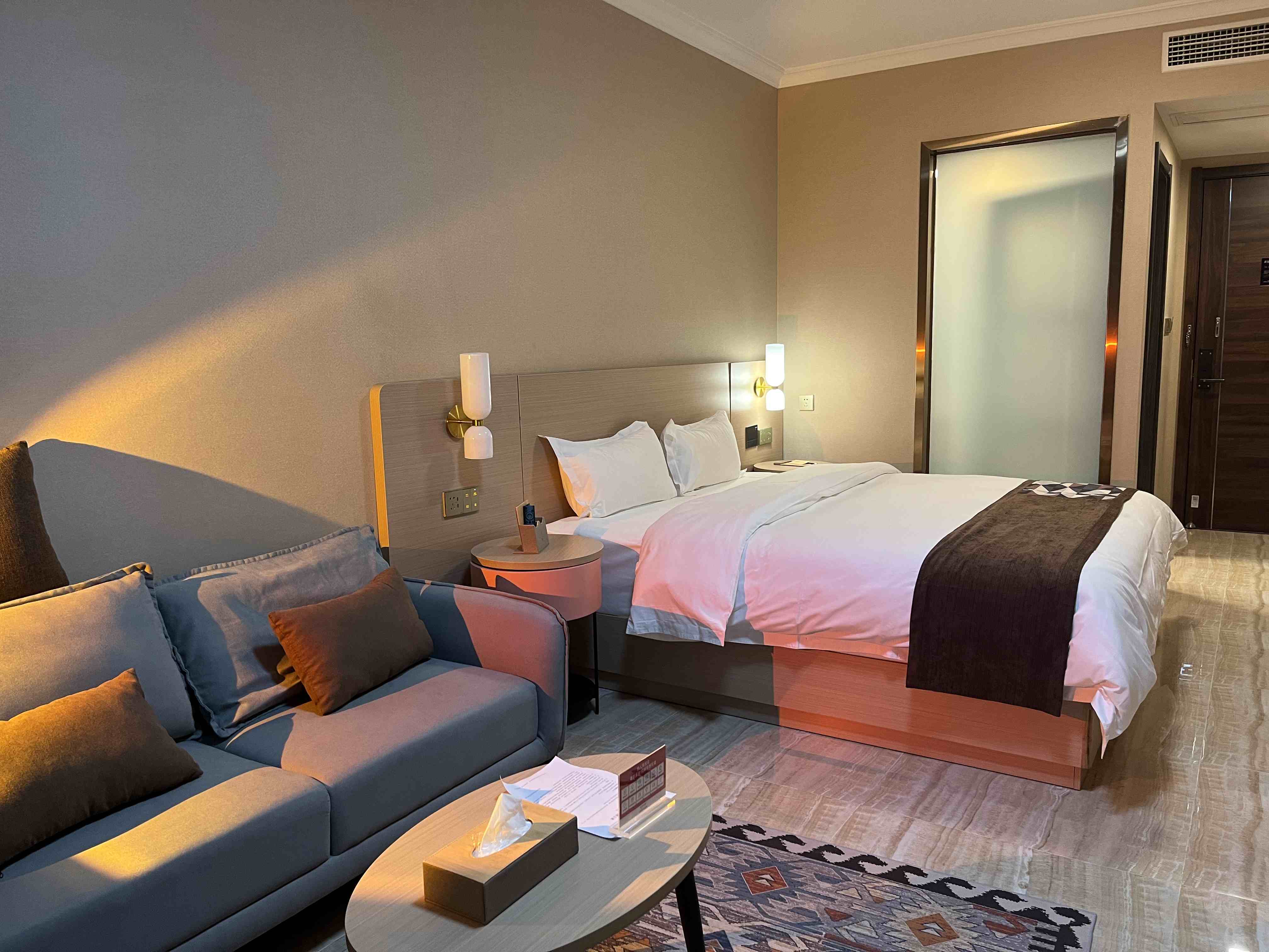 酒店的房间装潢简约而清新每一处的摆设