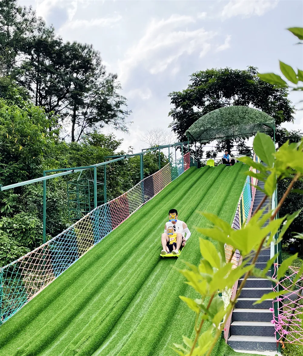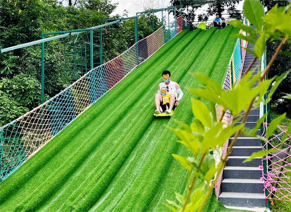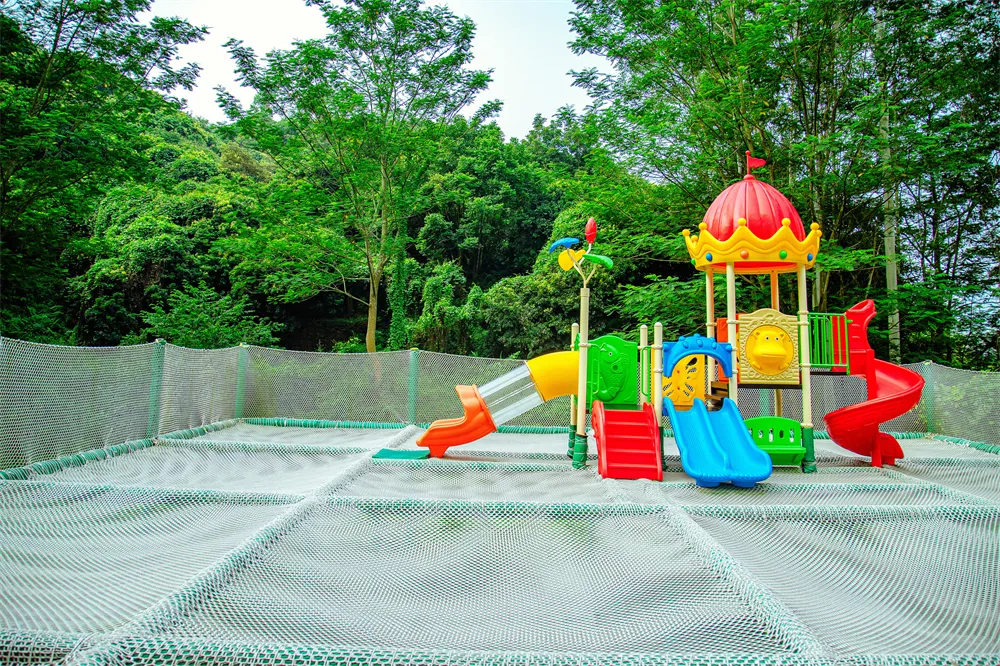 在柔软的大网上体验别样的滑滑梯快乐。