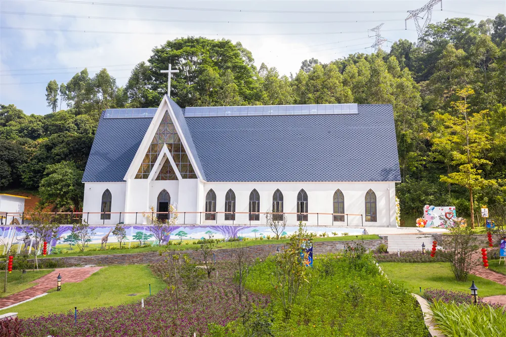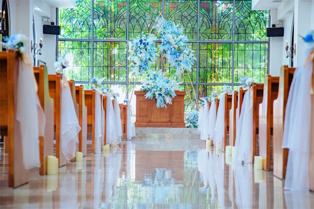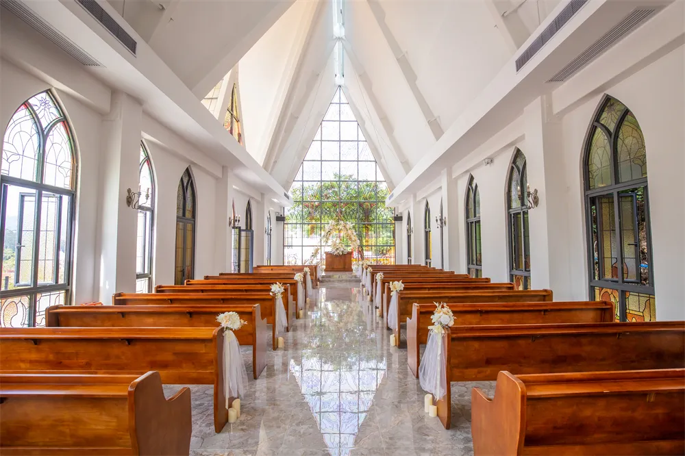 阳光折射出的七彩琉璃光,洒满在这浪漫的礼堂。