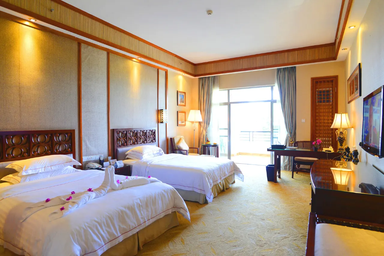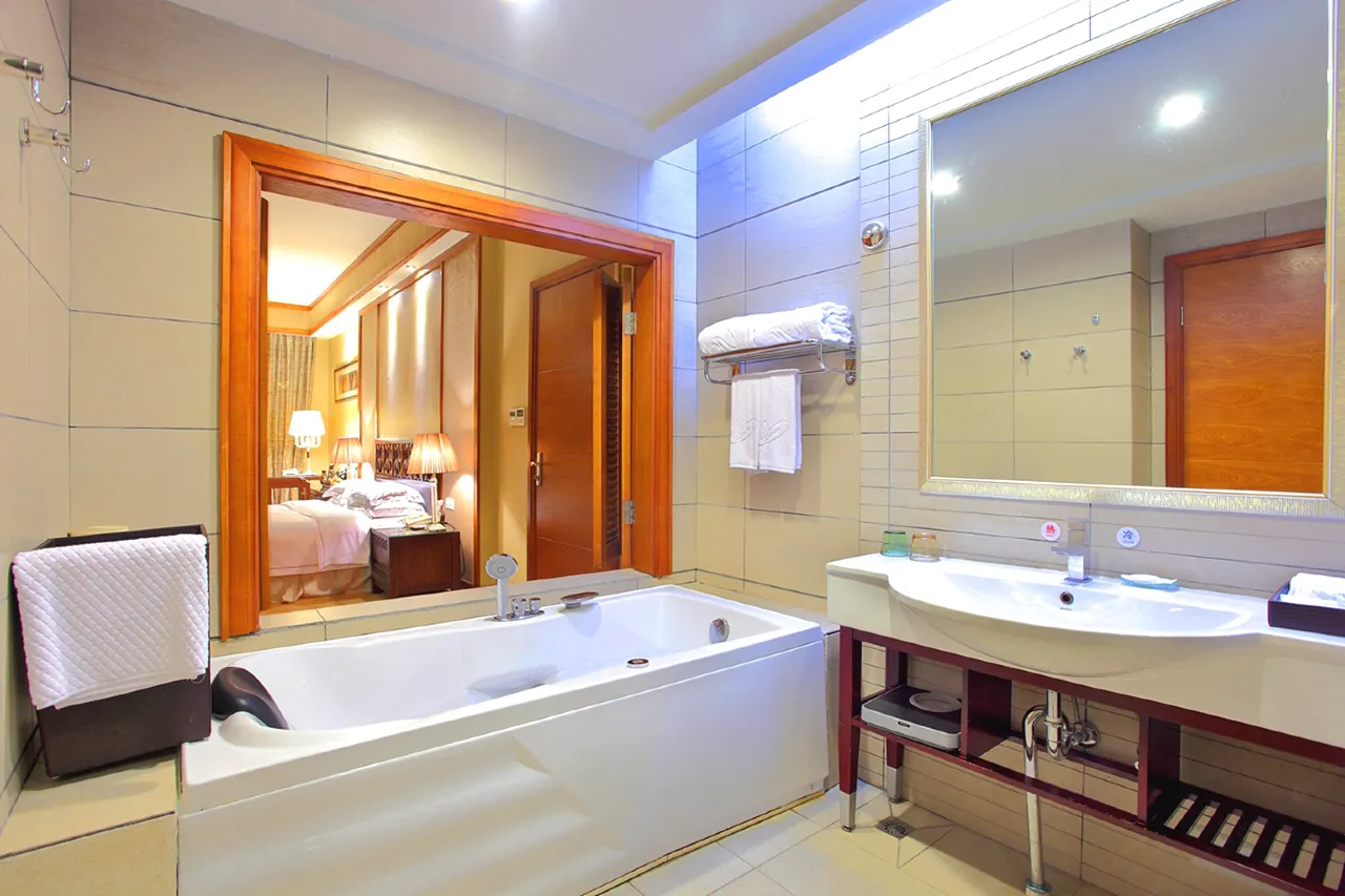 1、可选升级酒店主楼泰雅主楼阳台浴缸房,大床或双床可选,房间带有浴缸泡池,需加收260元