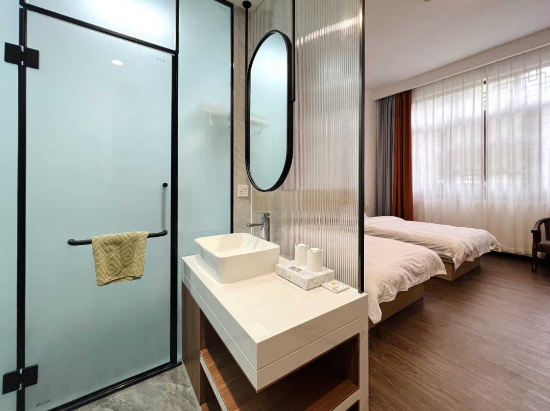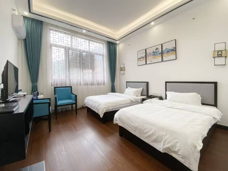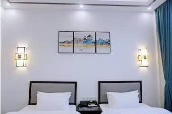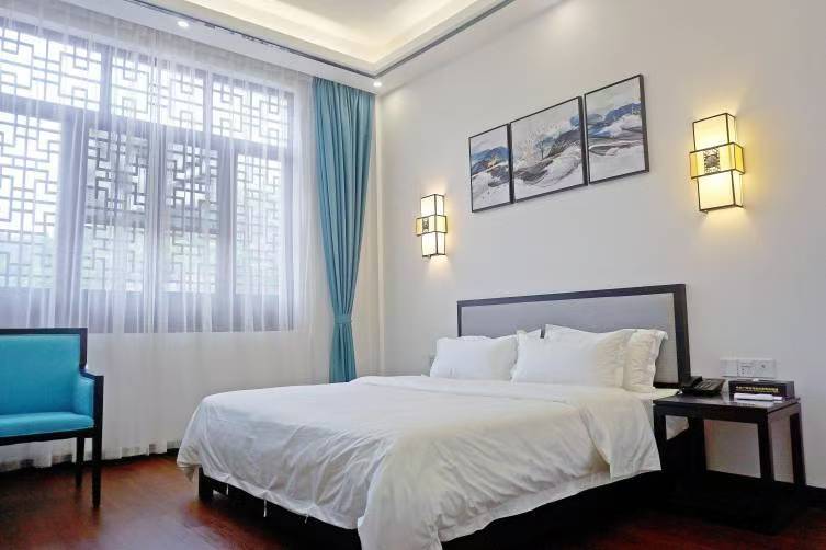 民宿客房装修整体简约加入的古风元素,让整体更有韵味轻奢而有格调