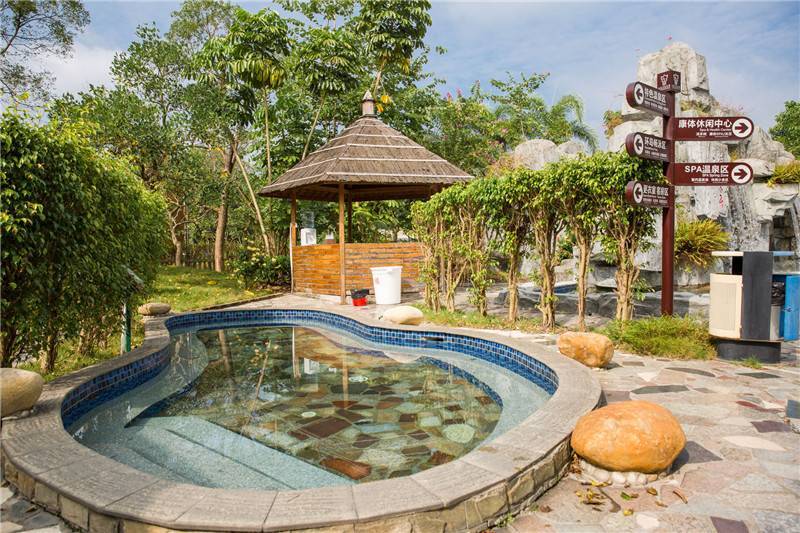 设有温泉冲浪池、温泉滑梯、温泉漂流、