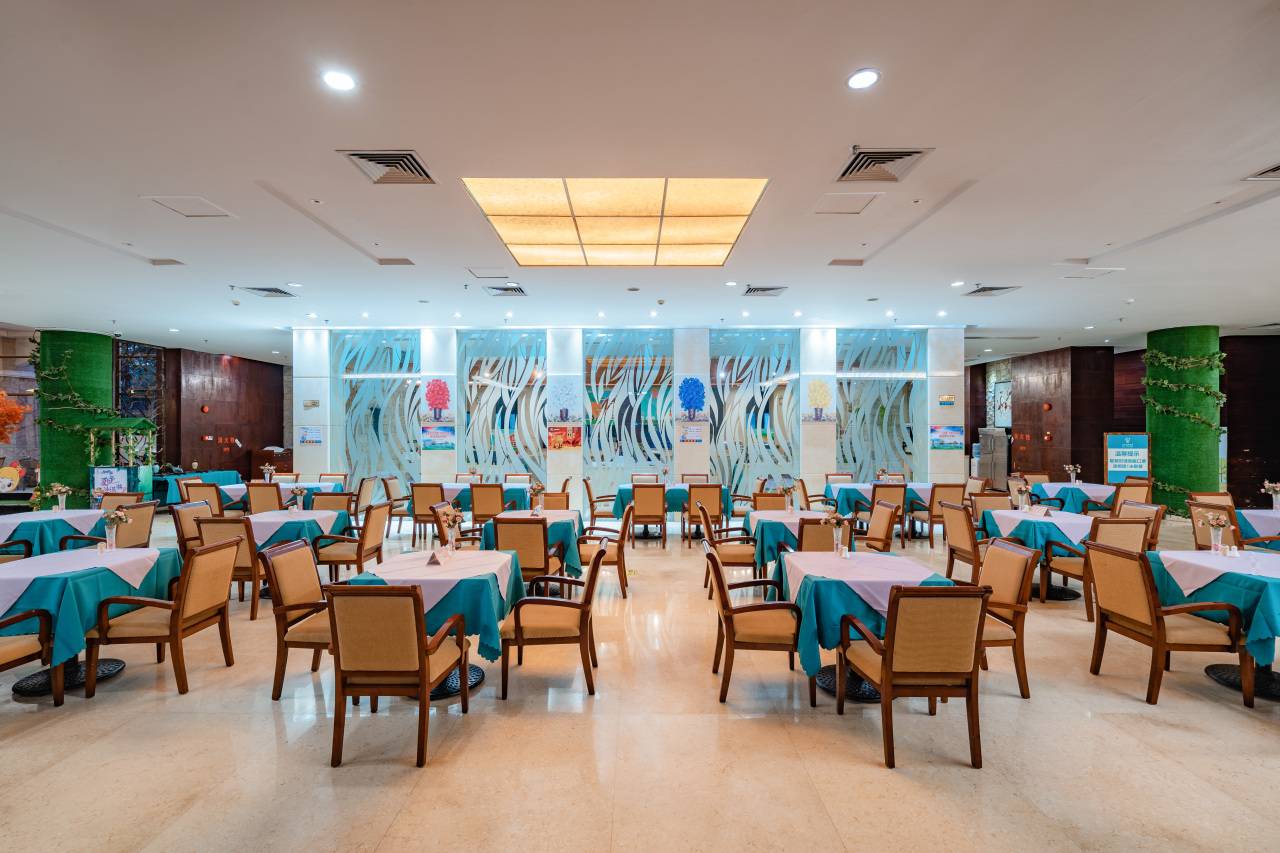 配有国际宴会厅、福园中餐厅、四季西餐厅、红色革命餐厅