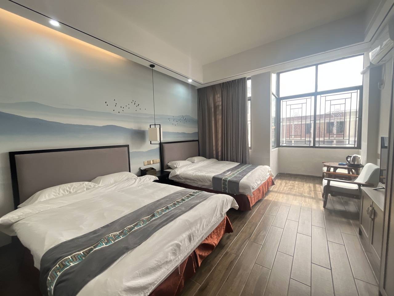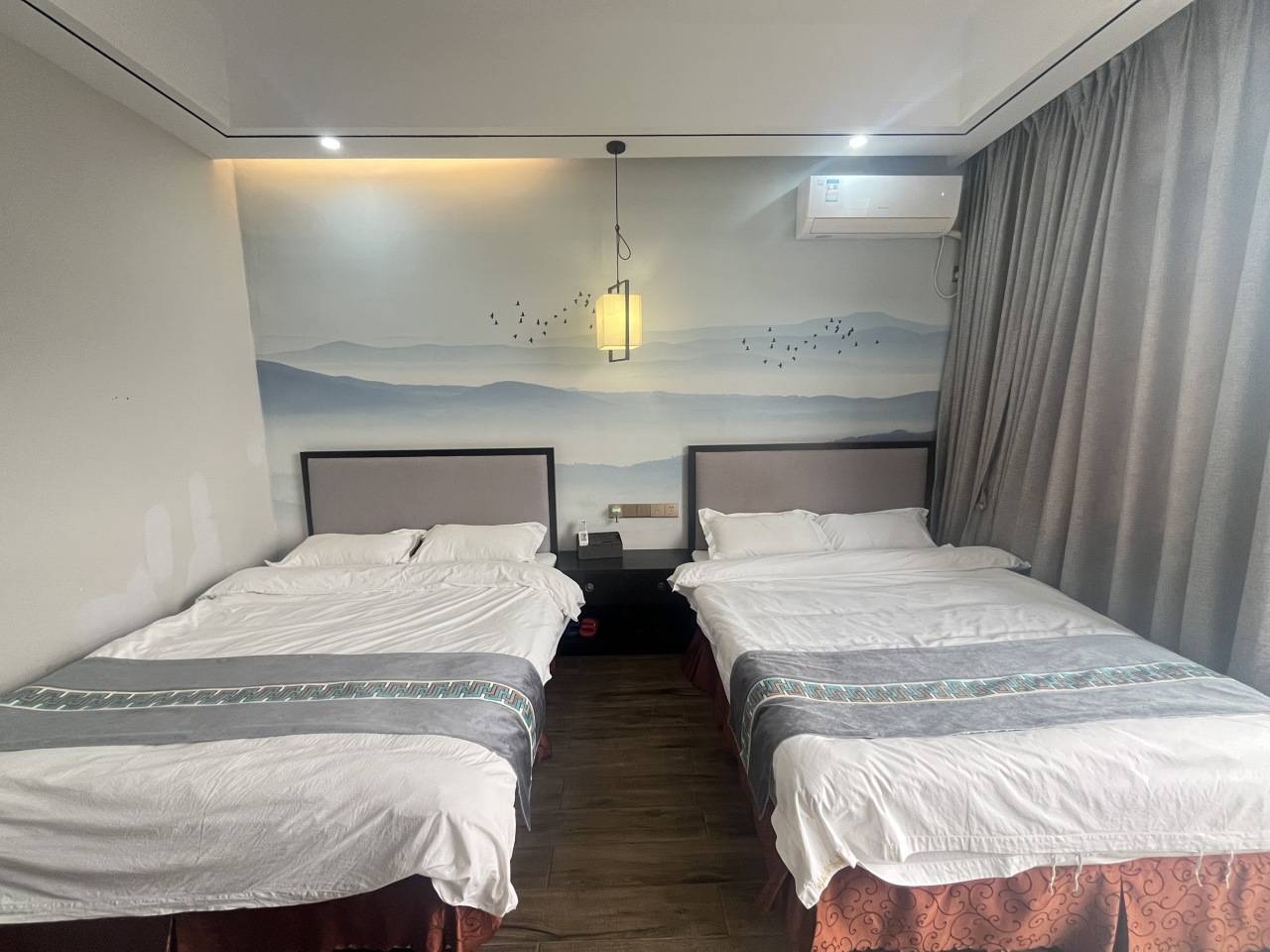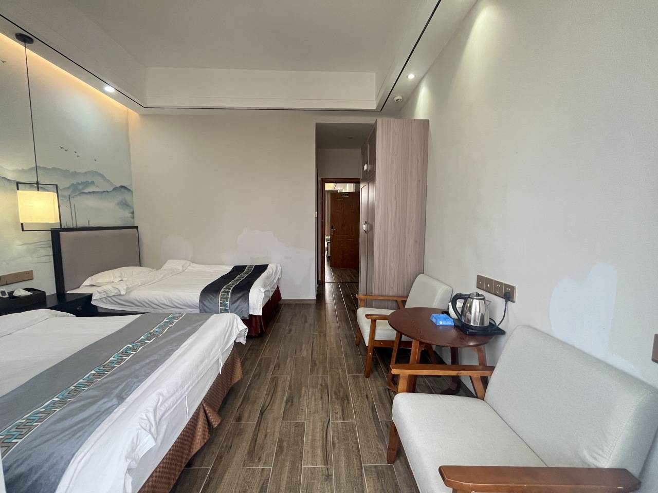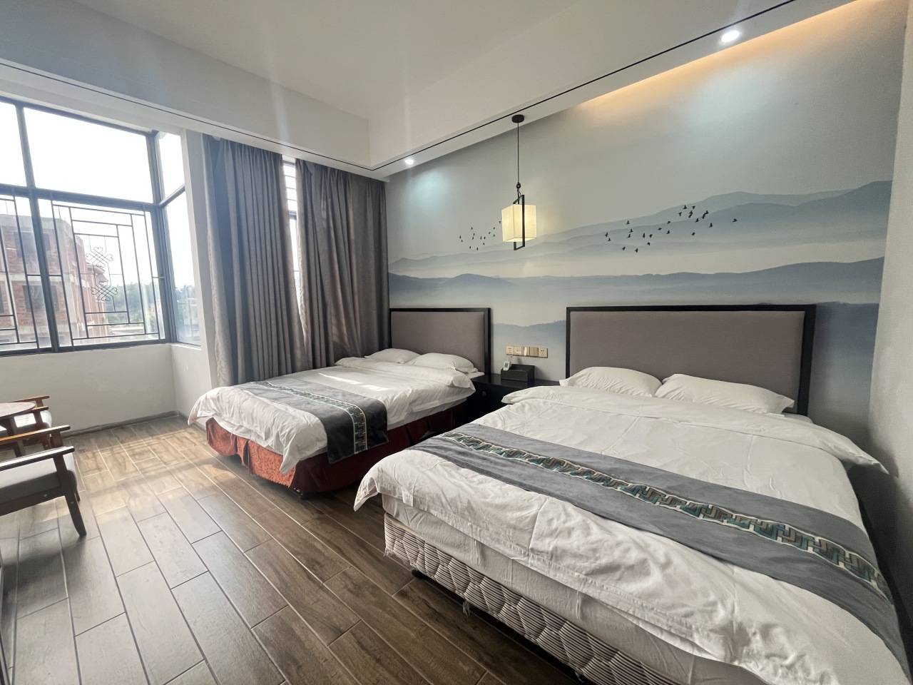2、床型参考:4张双床1.5,2个卫生间,客厅、麻将桌,随机安排,不可加床