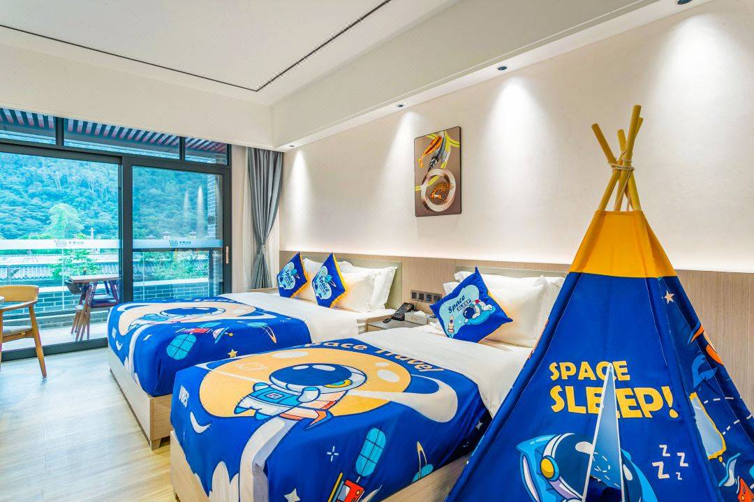 升级童趣主题双床房(1.8米床+1米床)/180°山景双床房(1.3米床2张)叠加收110元/间,节假日周六叠加加收!