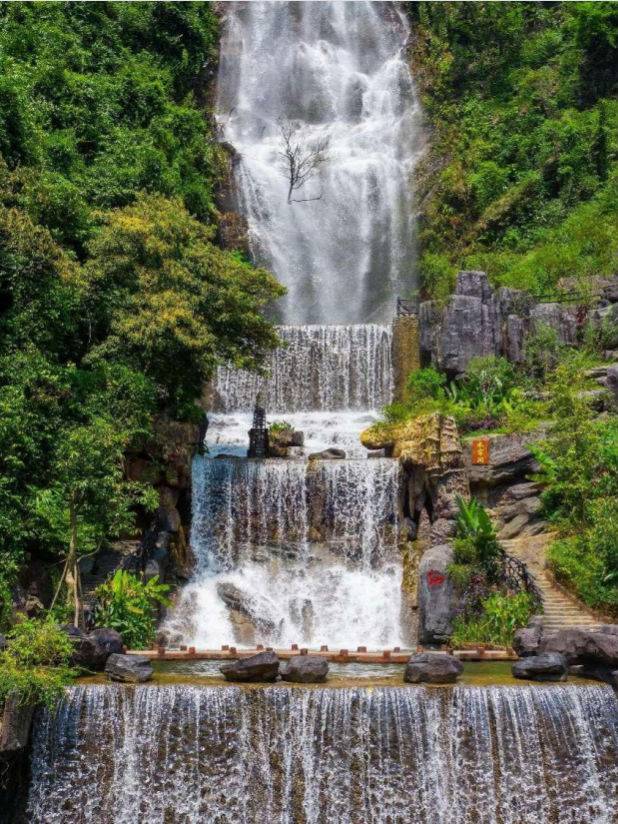由奇石深潭、清溪碧水、九重瀑布
