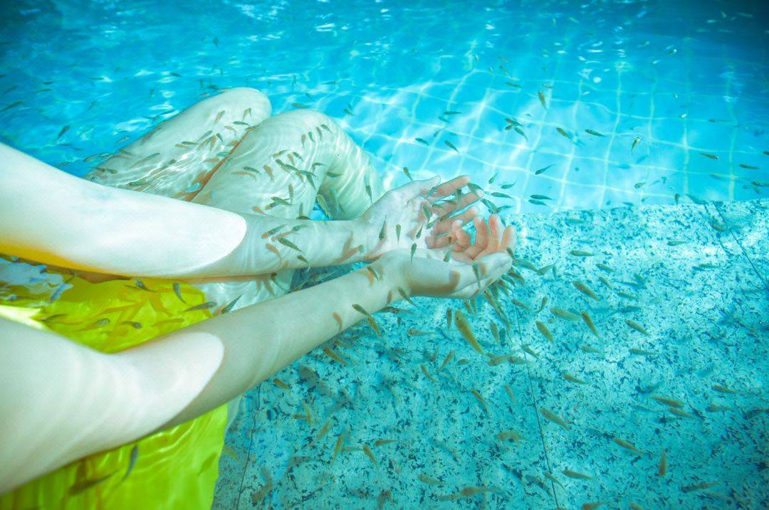 【温泉+亲亲鱼疗+养生石板床】1.2-1.4 米大童加收 84元/位,1.4 米以上及成人 168 元/位;
