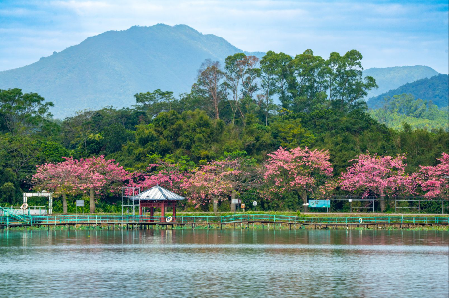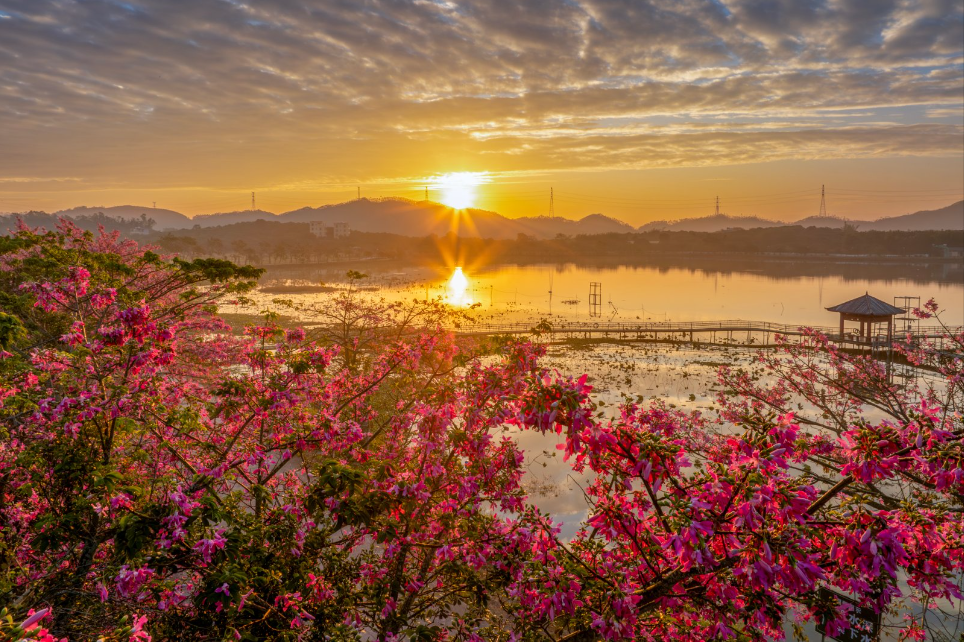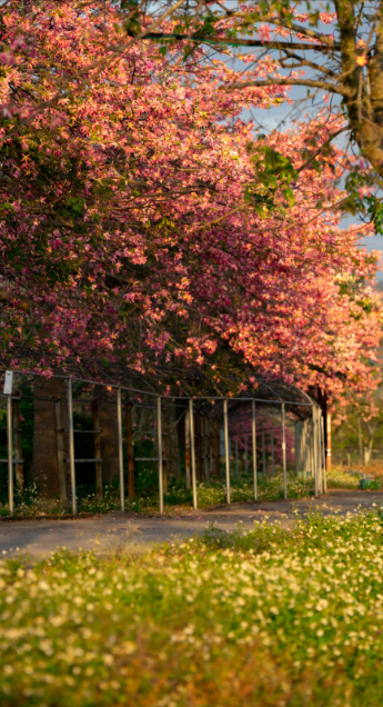 不止有异木棉温柔的粉,还有杜鹃花编织的绚烂花毯
