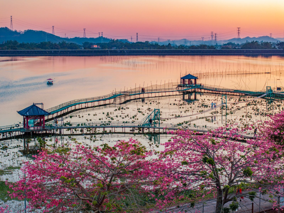 湖畔旁的异木棉,在冬日的暖阳下全面盛放!