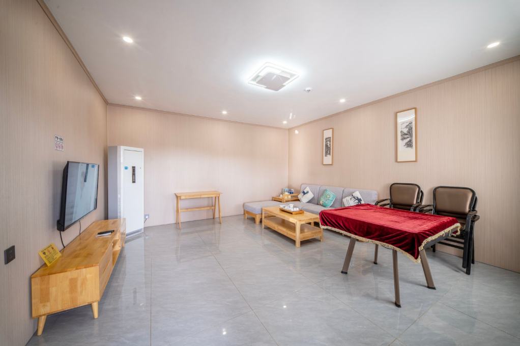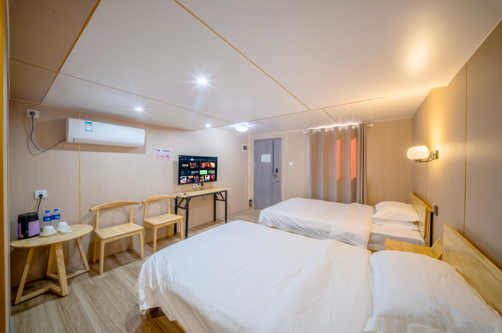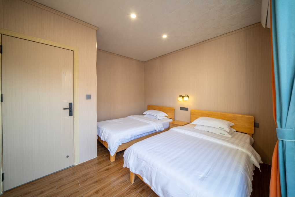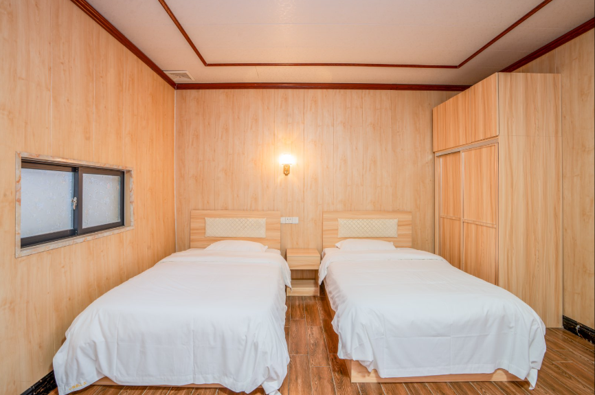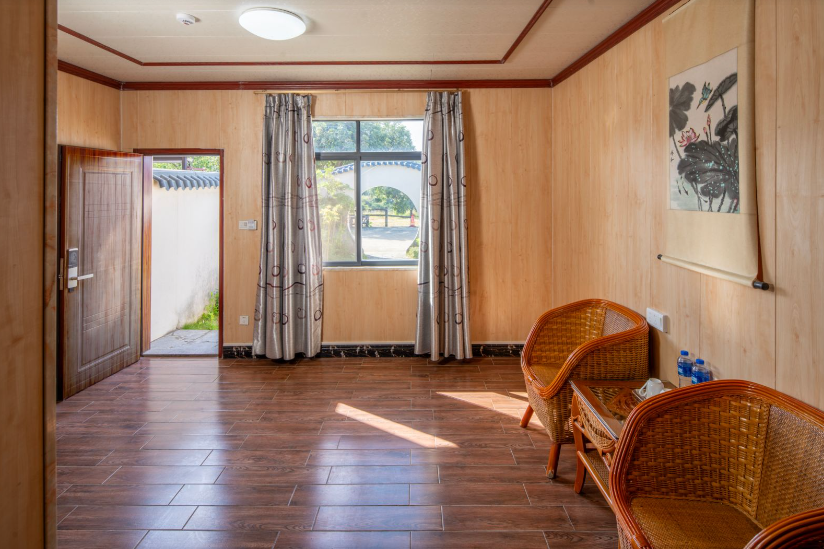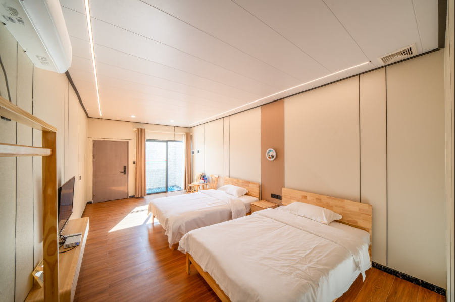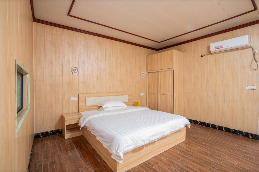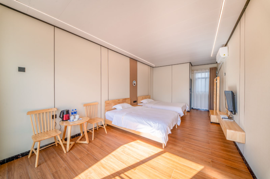 度假村的民宿风格简约而温暖,木质的家具和地板,让整个空间充满了自然的气息。房间宽敞明亮,设施齐全,从舒适的床铺到贴心的细节,都让人有回家的感觉。