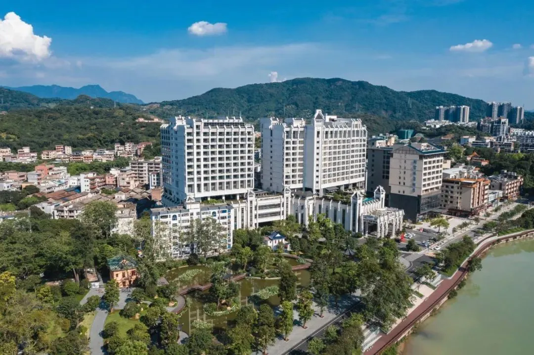 酒店的两栋主楼,就像两位亭亭玉立的妙龄少女,静静地陪伴着从眼前横穿而过的流溪河。