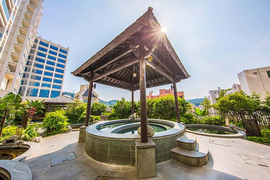 酒店温泉水疗区设有中药池,将温泉泡汤养生理念与中医健康养生结合,多种中药经过一小时高温熬制,浓缩中草药之精华,有安神益眠、舒筋活血的效果。